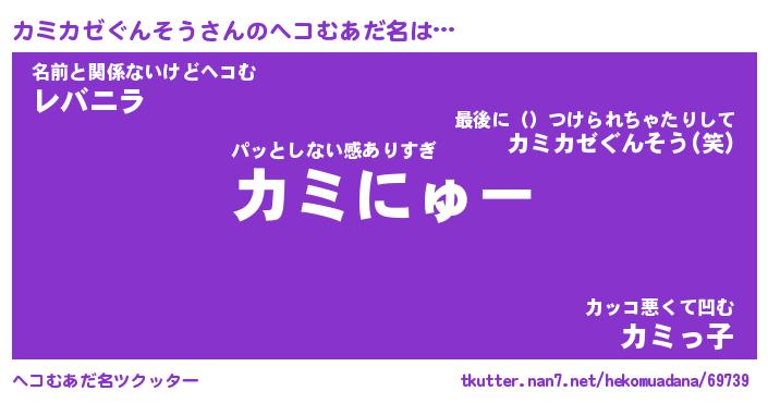 | ファンタジー風あだ名 | 『カミフェル』『ファントムカミス』 |