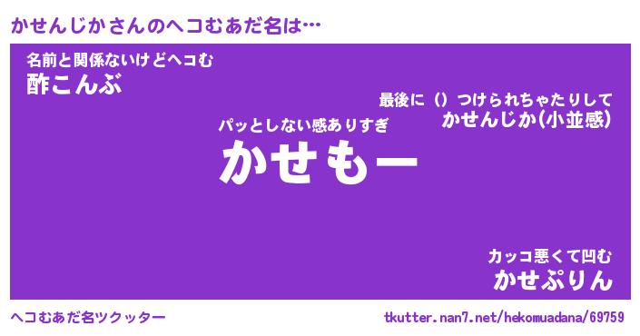 | 恥ずかしいあだ名 | 『プリティーかせんじか』『かせっちょ』 |