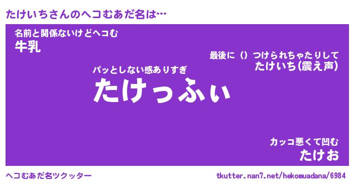 | ファンタジー風あだ名 | 『タケフェル』『エターナルタケイチー』 |