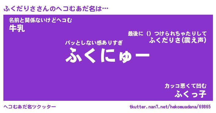 | ヒーロー風カッコイイあだ名 | 『スーパーフクダリサ』『暗黒騎士フク』 |
