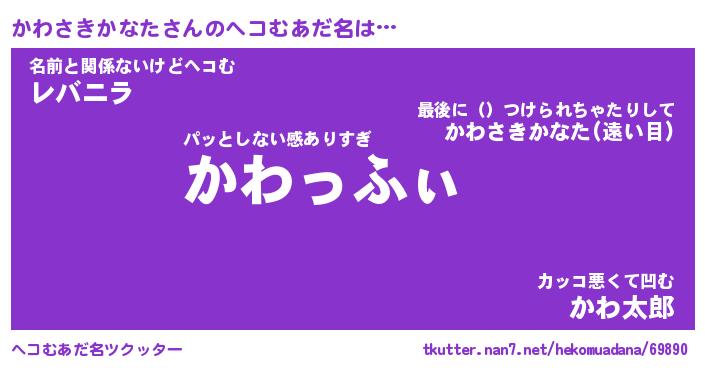 | 胡散臭い通販商品みたいなあだ名 | 『モテモテ間違いなし霊験あらたかなお札…その名も「かわさきかなた」』 |