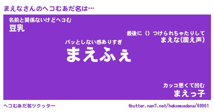 | ヒーロー風カッコイイあだ名 | 『スーパーマエナ』『ウルトラまえなマン』 |