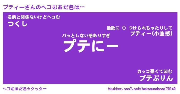 | 意味不明あだ名 | 『ペロリンプティー』『永久保存プティー』 |