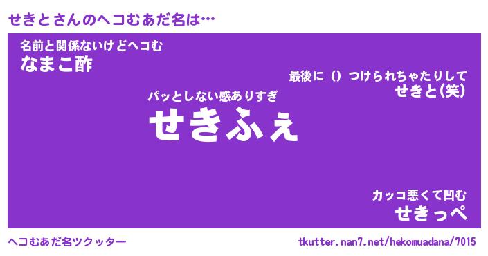 | ヒーロー風カッコイイあだ名 | 『スーパーセキト』『ウルトラせきとマン』 |