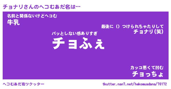 | 男性向けラノベタイトル風あだ名 | 『チョナリの憂鬱』 |