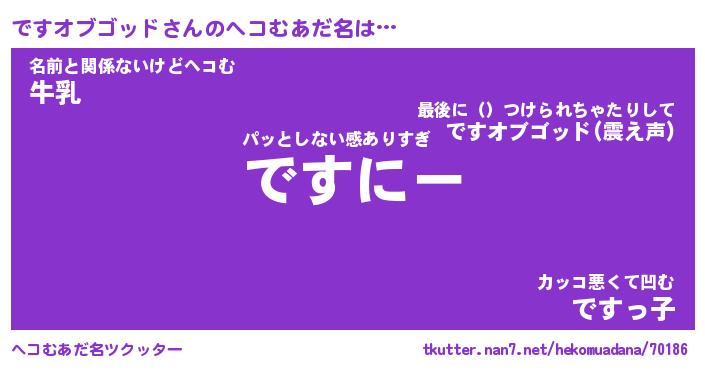 | 男性向けラノベタイトル風あだ名 | 『ですオブゴッドの憂鬱』 |