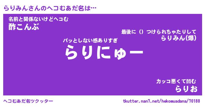 | 意味不明あだ名 | 『ペロリンらりみん』『永久保存らりみん』 |