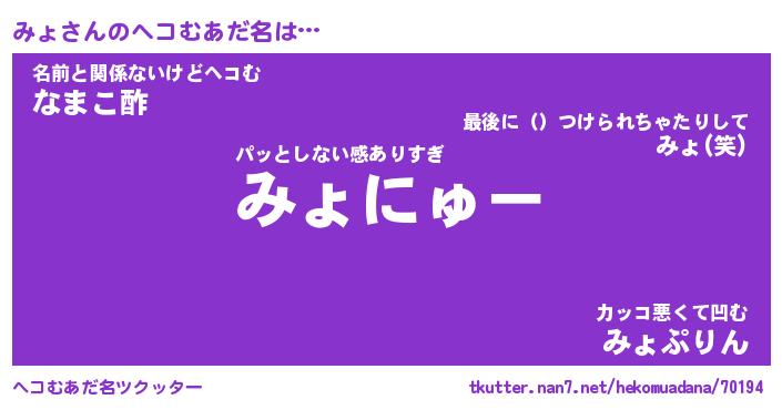 | ヒーロー風カッコイイあだ名 | 『スーパーミョ』『ウルトラみょマン』 |
