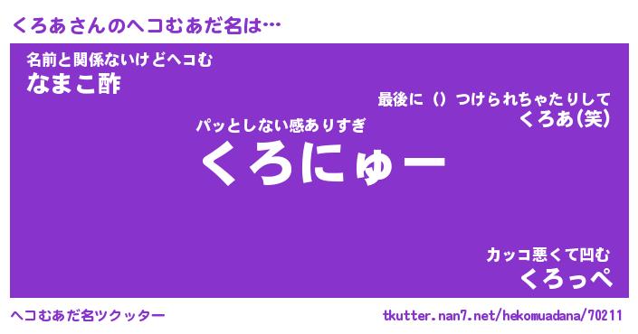 | 胡散臭い通販商品みたいなあだ名 | 『必ず成功する水晶球…その名も「くろあ」』 |