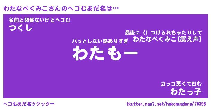 | 男性向けラノベタイトル風あだ名 | 『わたなべくみこの憂鬱』 |