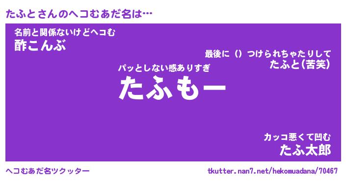 | 男性向けラノベタイトル風あだ名 | 『たふとの憂鬱』 |