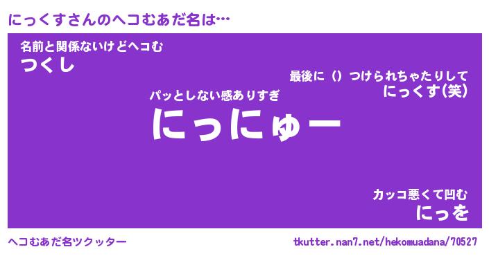 | 男性向けラノベタイトル風あだ名 | 『にっくすの憂鬱』 |
