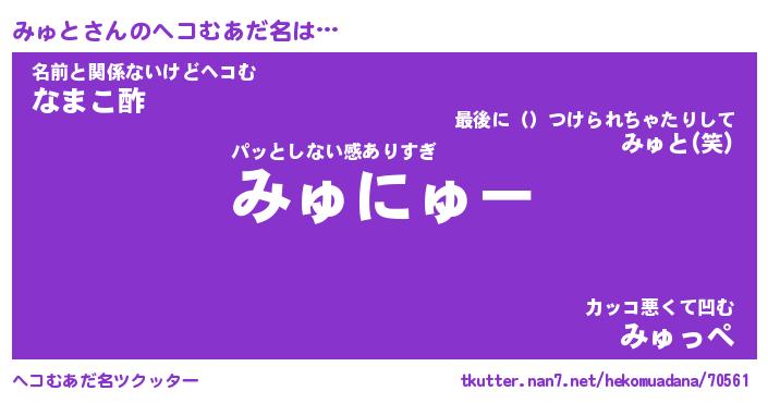 | 意味不明あだ名 | 『ペロリンみゅと』『みゅとフォーエバー』 |