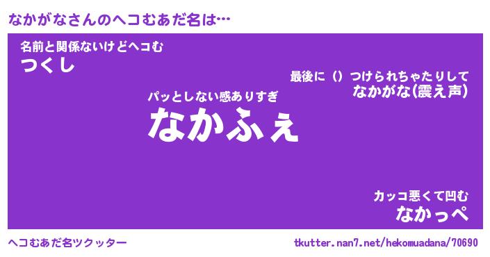 | 意味不明あだ名 | 『ペロリンなかがな』『永久保存なかがな』 |