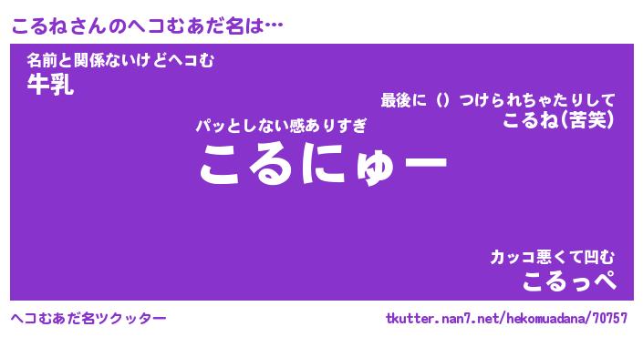 | 恥ずかしいあだ名 | 『プリティーこるね』『こるっちょ』 |