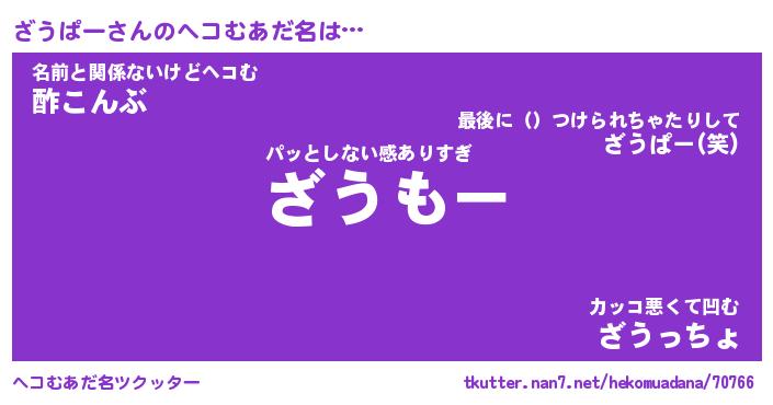 | 意味不明あだ名 | 『ペロリンざうぱー』『永久保存ざうぱー』 |