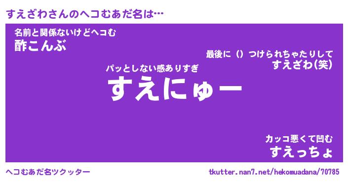 | 意味不明あだ名 | 『ペロリンすえざわ』『永久保存すえざわ』 |