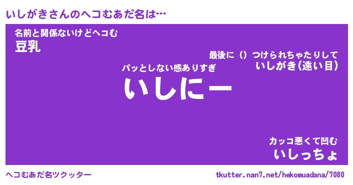 | ファンタジー風あだ名 | 『イシフェル』『エターナルイシガキー』 |