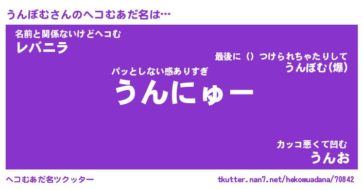 | ポケモン風あだ名 | 『ウンチュウ』『ウンボダネ』 |