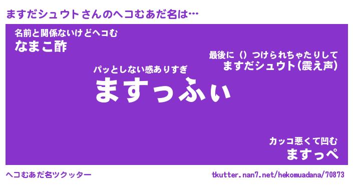 | 胡散臭い通販商品みたいなあだ名 | 『モテモテ間違いなし霊験あらたかなお札…その名も「ますだシュウト」』 |