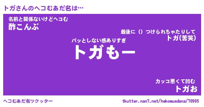 | ポケモン風あだ名 | 『トガチュウ』『トガダネ』『ヒトガ』 |