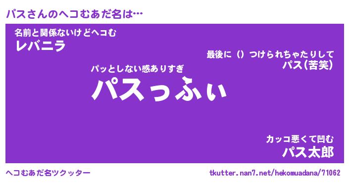 | ファンタジー風あだ名 | 『パスフェル』『エターナルパスー』 |