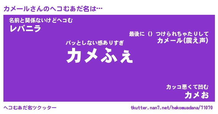 | 男性向けラノベタイトル風あだ名 | 『カメールアートオンライン』 |
