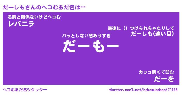 | 意味不明あだ名 | 『ペロリンだーしも』『永久保存だーしも』 |