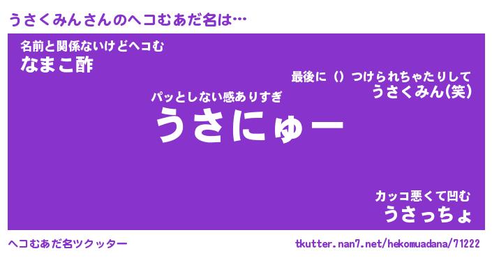 | ポケモン風あだ名 | 『ウサチュウ』『ウサクダネ』 |