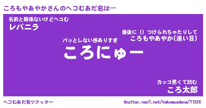 | 意味不明あだ名 | 『ペロリンころもやあやか』 |