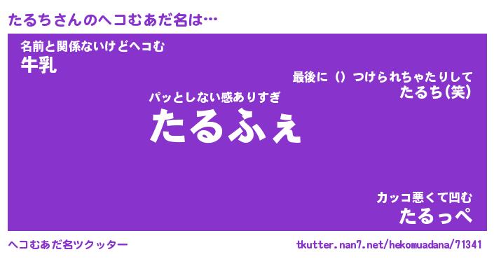 | 男性向けラノベタイトル風あだ名 | 『たるちの憂鬱』 |