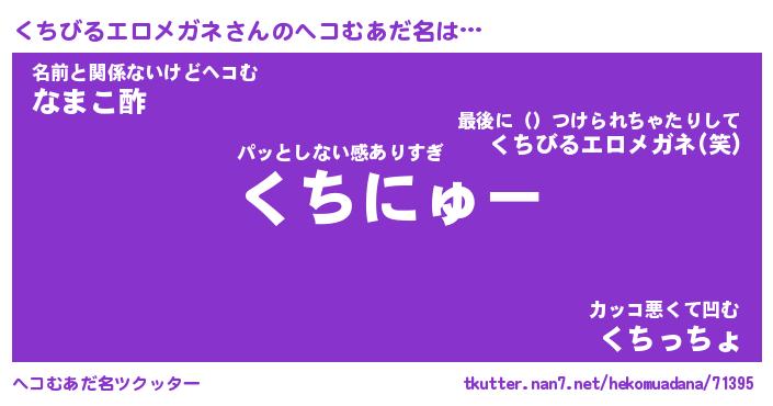 | 男性向けラノベタイトル風あだ名 | 『くちびるエロメガネの憂鬱』 |
