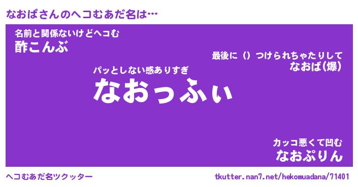 | ポケモン風あだ名 | 『ナオチュウ』『ナオバダネ』 |