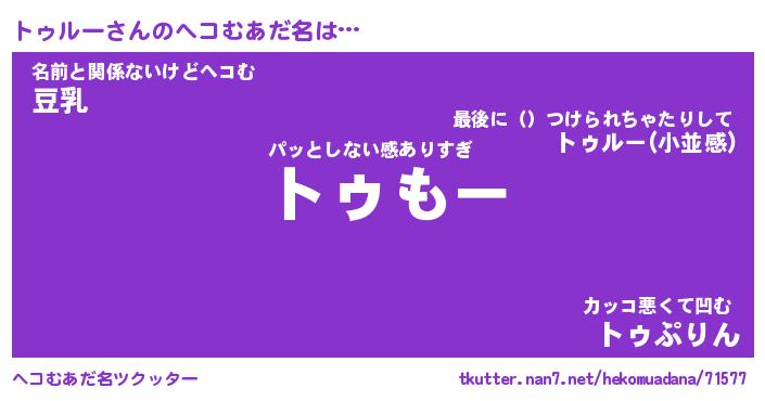 | 意味不明あだ名 | 『ペロリントゥルー』『永久保存トゥルー』 |
