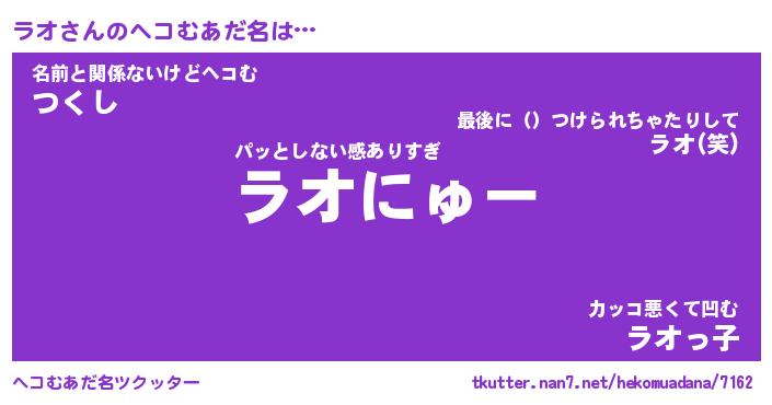| ポケモン風あだ名 | 『ラオチュウ』『ラオダネ』『ヒラオ』 |