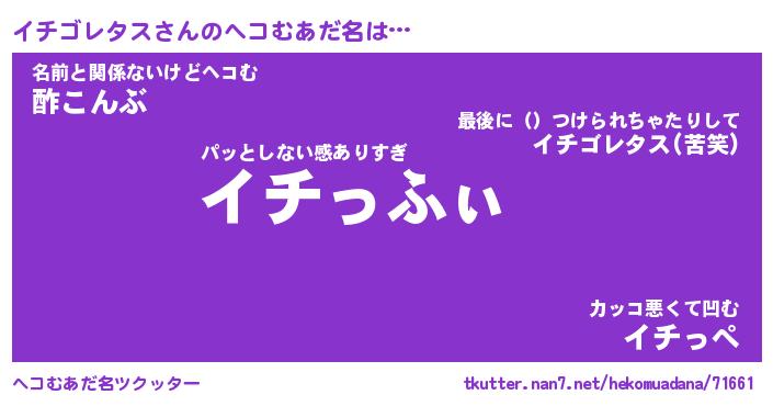 | ポケモン風あだ名 | 『イチチュウ』『イチゴダネ』 |