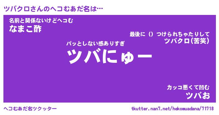 | ヒーロー風カッコイイあだ名 | 『スーパーツバクロ』『暗黒騎士ツバ』 |