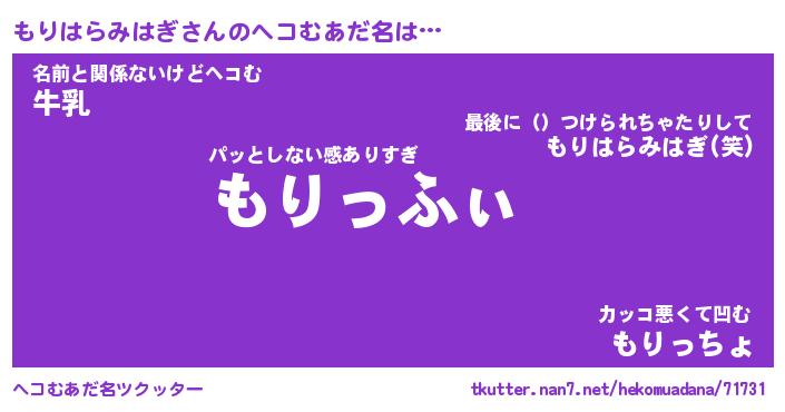 | 恥ずかしいあだ名 | 『プリティーもりはらみはぎ』『もりちん』 |