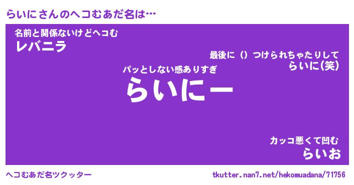 | 2回繰り返すあだ名 | 『らいらい』『ららいい』 |