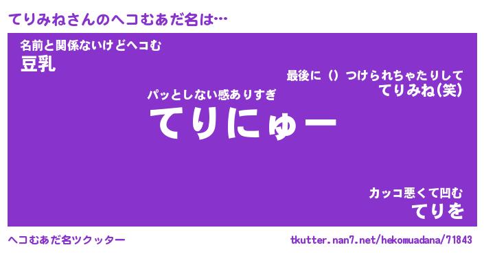 | 意味不明あだ名 | 『ペロリンてりみね』『永久保存てりみね』 |
