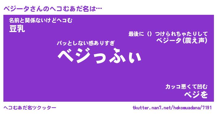 | ポケモン風あだ名 | 『ベジチュウ』『ベジーダネ』 |