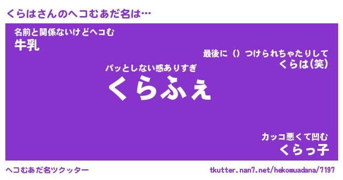 | 意味不明あだ名 | 『ペロリンくらは』『くらはフォーエバー』 |