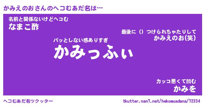 | ファンタジー風あだ名 | 『カミフェル』『エターナルカミエノオー』 |