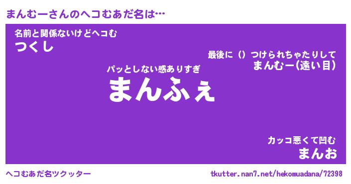 | 意味不明あだ名 | 『ペロリンまんむー』『永久保存まんむー』 |