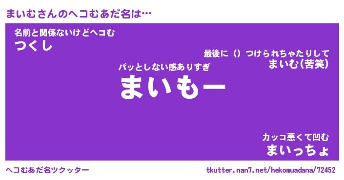 | 恥ずかしいあだ名 | 『プリティーまいむ』『まいっちょ』 |