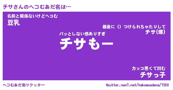 | 2回繰り返すあだ名 | 『チサチサ』『チチササ』『ぬれぬれ』 |