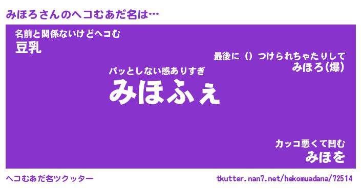 | ヒーロー風カッコイイあだ名 | 『スーパーミホロ』『ウルトラみほろマン』 |