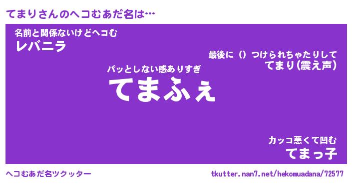 | 意味不明あだ名 | 『ペロリンてまり』『てまりフォーエバー』 |