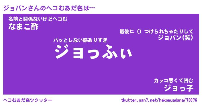 | ファンタジー風あだ名 | 『ジョフェル』『エターナルジョバンー』 |