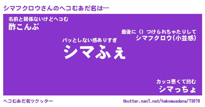 | ヒーロー風カッコイイあだ名 | 『スーパーシマフクロウ』『銀牙騎士シマ』 |